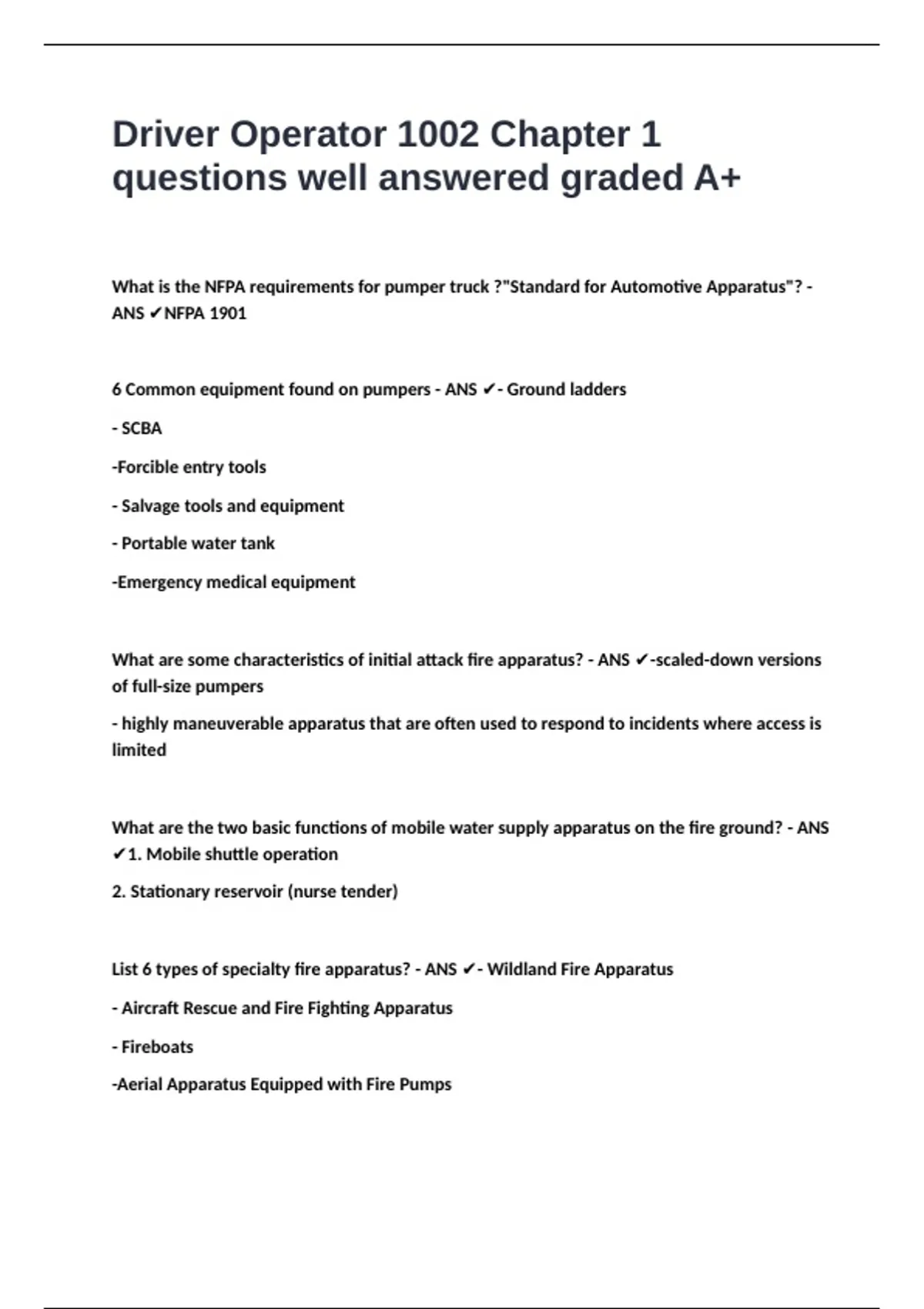 Driver Operator 1002 Chapter 1 questions well answered graded A+