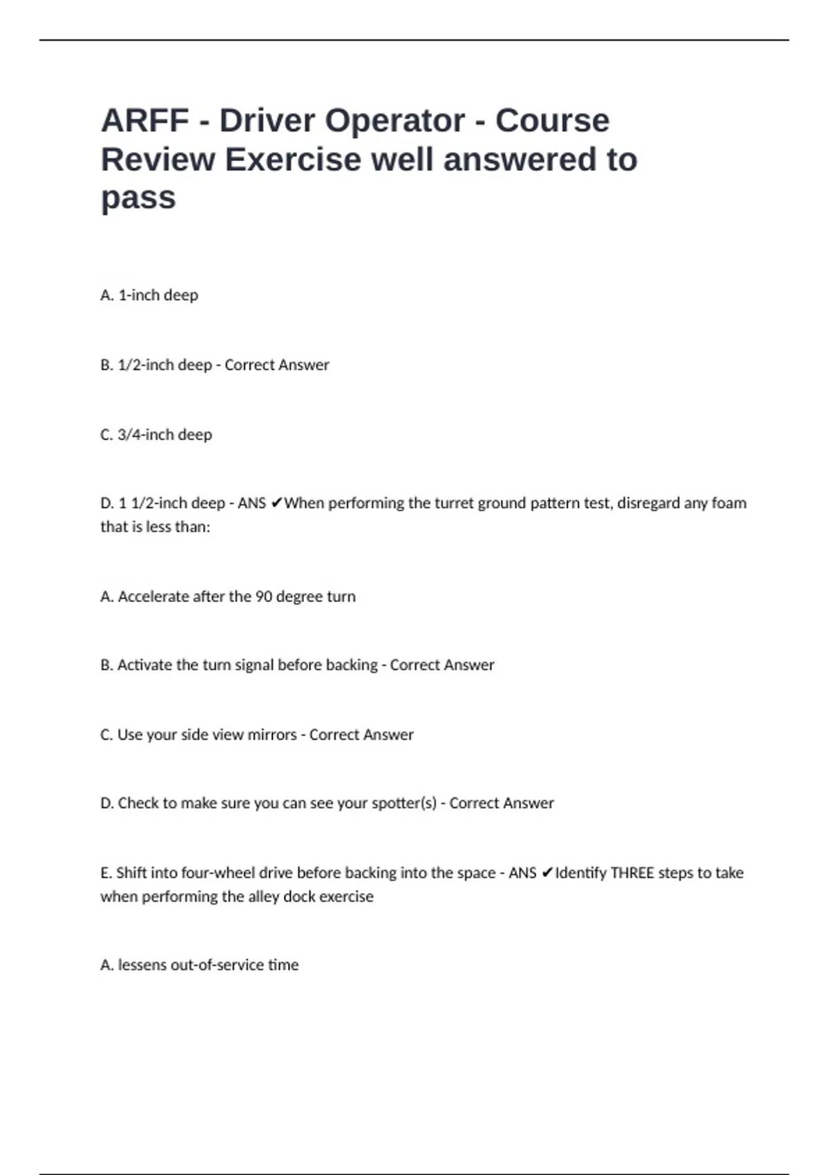 ARFF - Driver Operator - Course Review Exercise well answered to pass