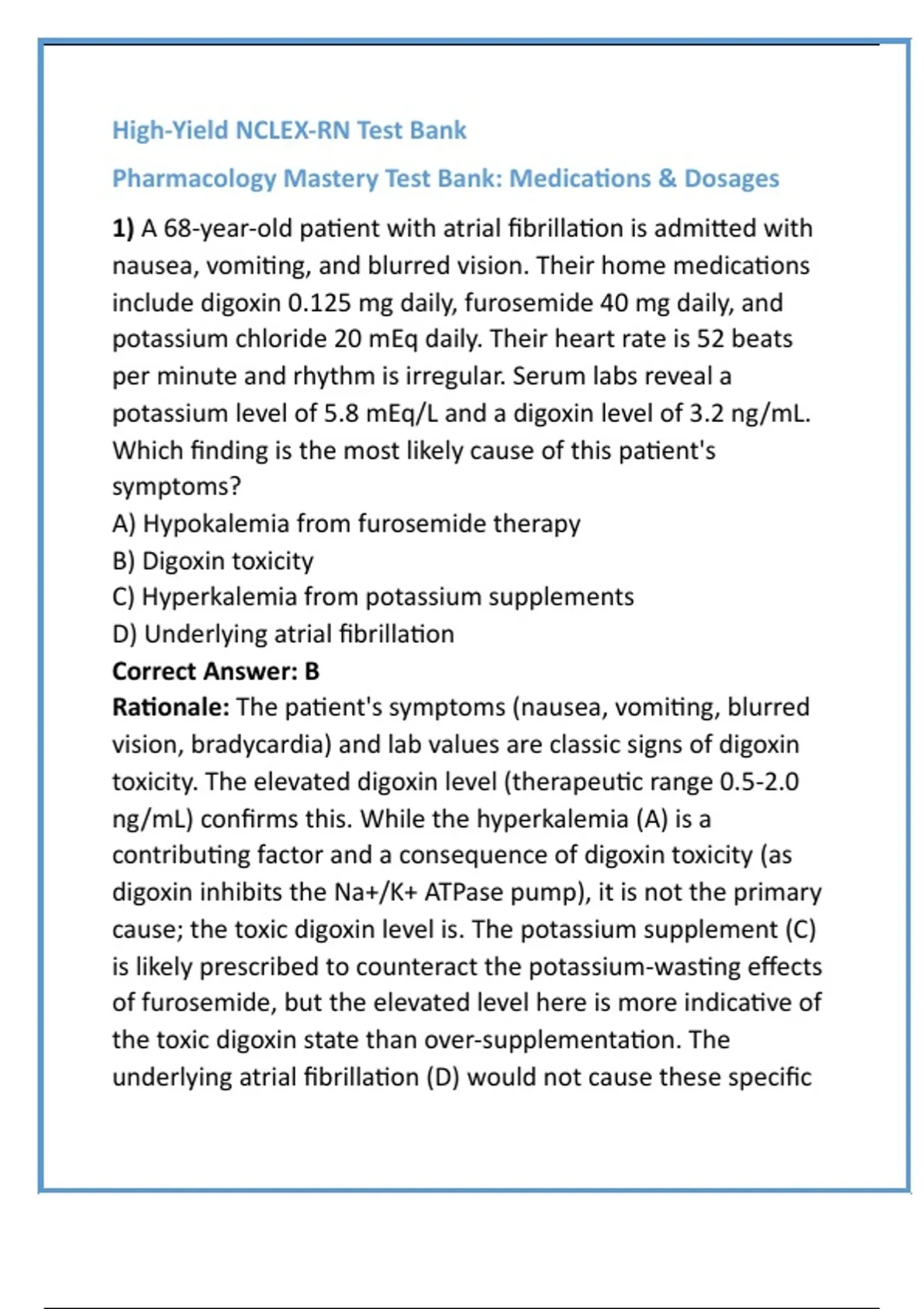 cause; the toxic digoxin level is. The potassium supplement (C)