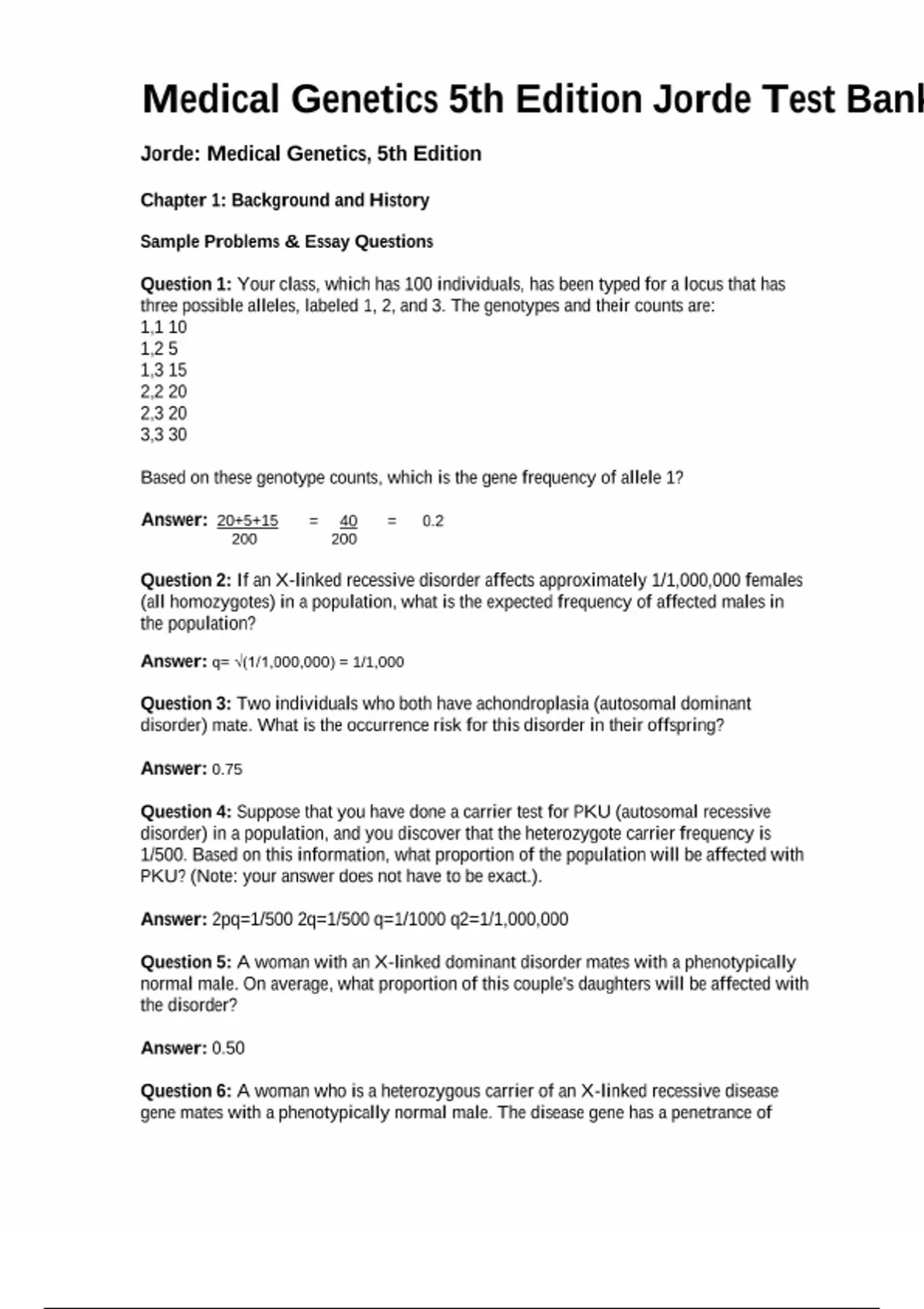 Test Bank For Medical Genetics 5th Edition by Lynn B.Jorde, John C.Carey, Michael J. Bamshad