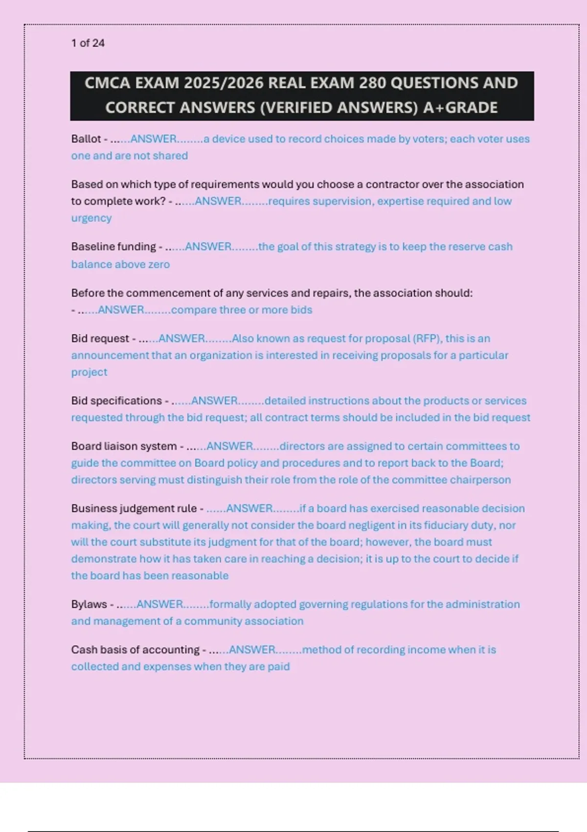 CMCA EXAM 2025/2026 REAL EXAM 280 QUESTIONS AND
