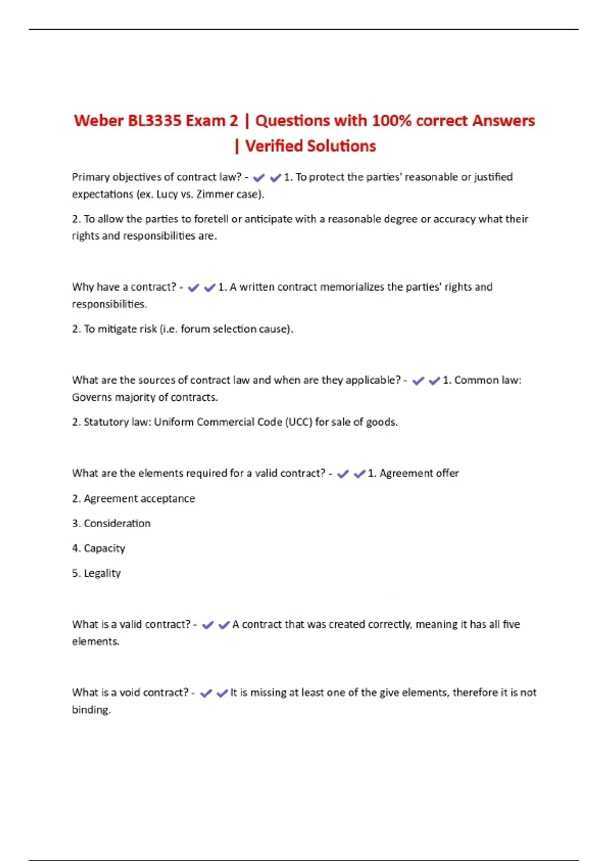 Weber BL3335 Exam 2 | Questions with 100% correct Answers | Verified Solutions