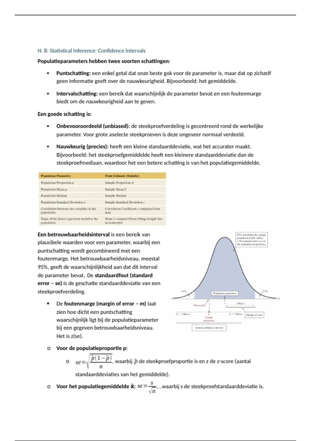 o Het betrouwbaarheidsinterval voor een populatieproportie p: ^p= ± margin of