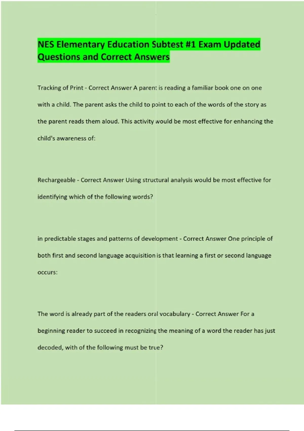 NES Elementary Education Subtest #1 Exam Updated Questions and Correct Answers