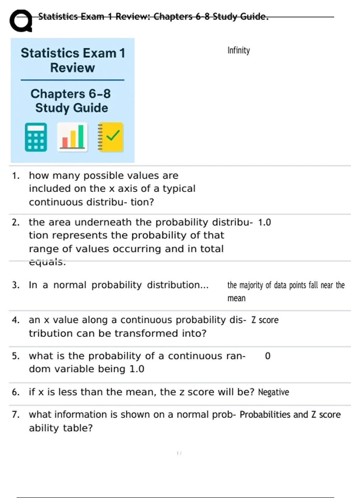 , Statistics Exam 1 Review: Chapters 6–8 Study Guide.
