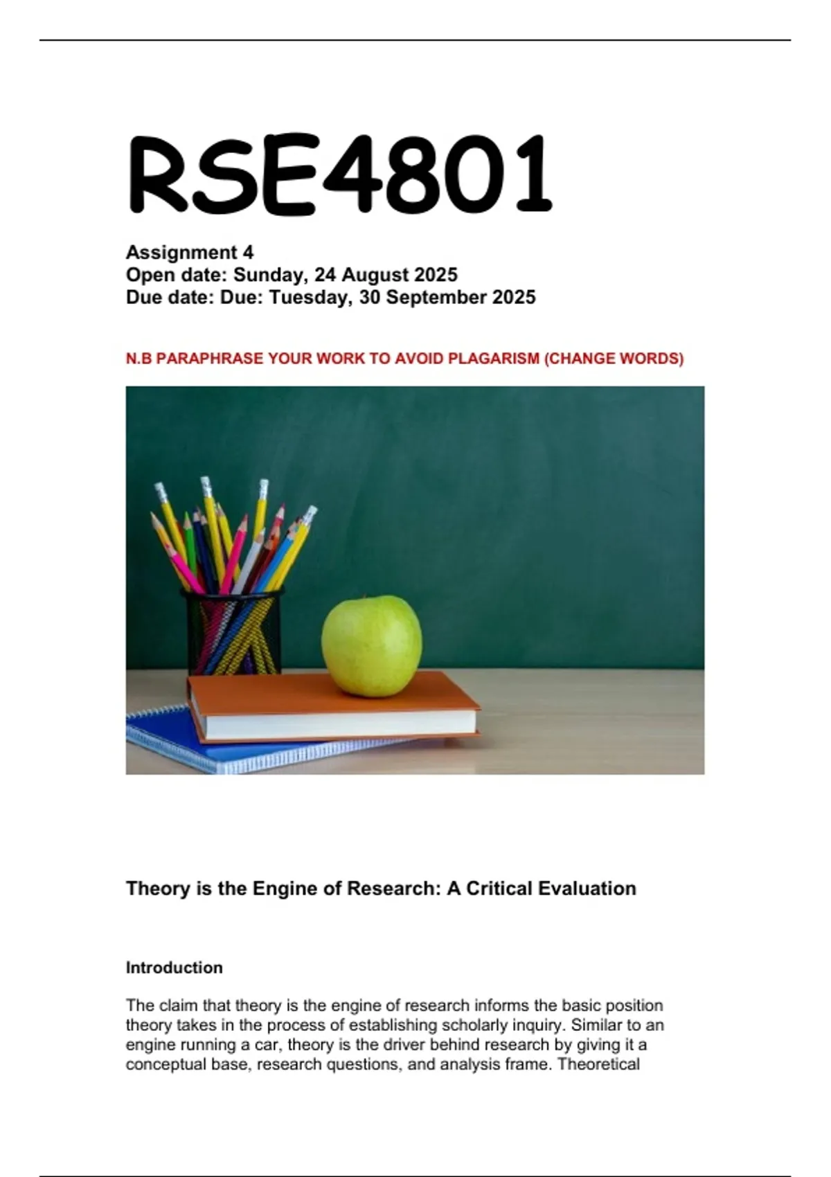 N.B PARAPHRASE YOUR WORK TO AVOID PLAGARISM (CHANGE WORDS)