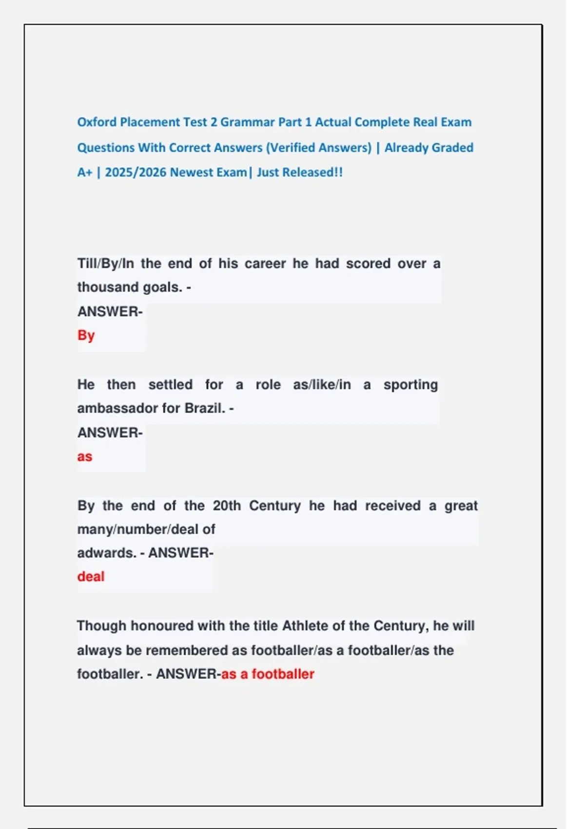 Questions With Correct Answers (Verified Answers) | Already Graded