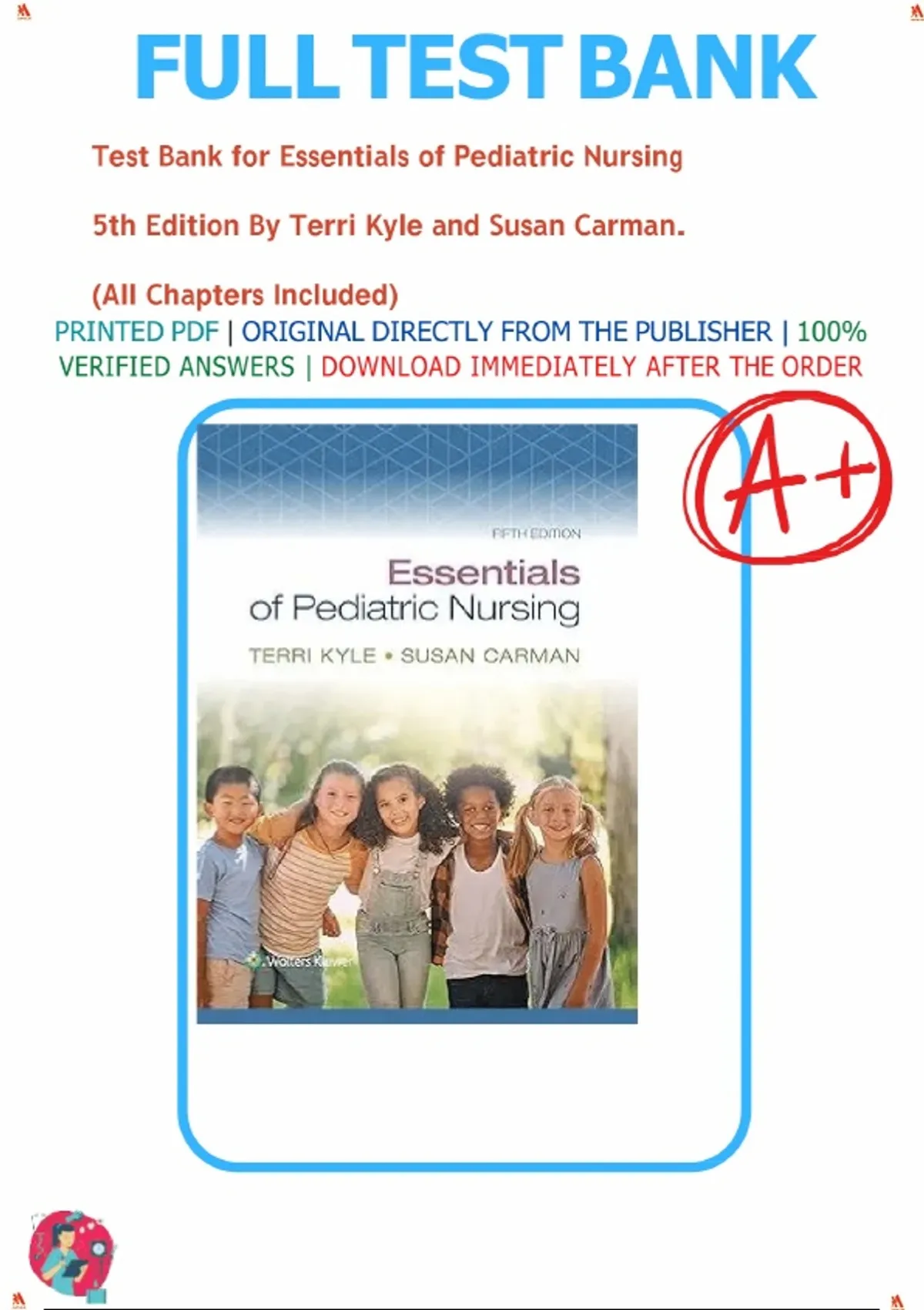 Test Bank for Essentials of Pediatric Nursing 5th Edition By Terri Kyle and Susan Carman.||All chapters 1-29 included.||Complete guide.