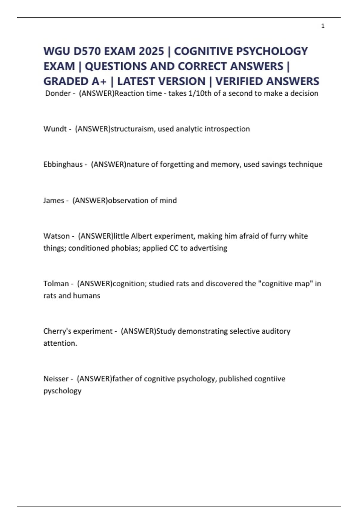 WGU D570 EXAM 2025 | COGNITIVE PSYCHOLOGY