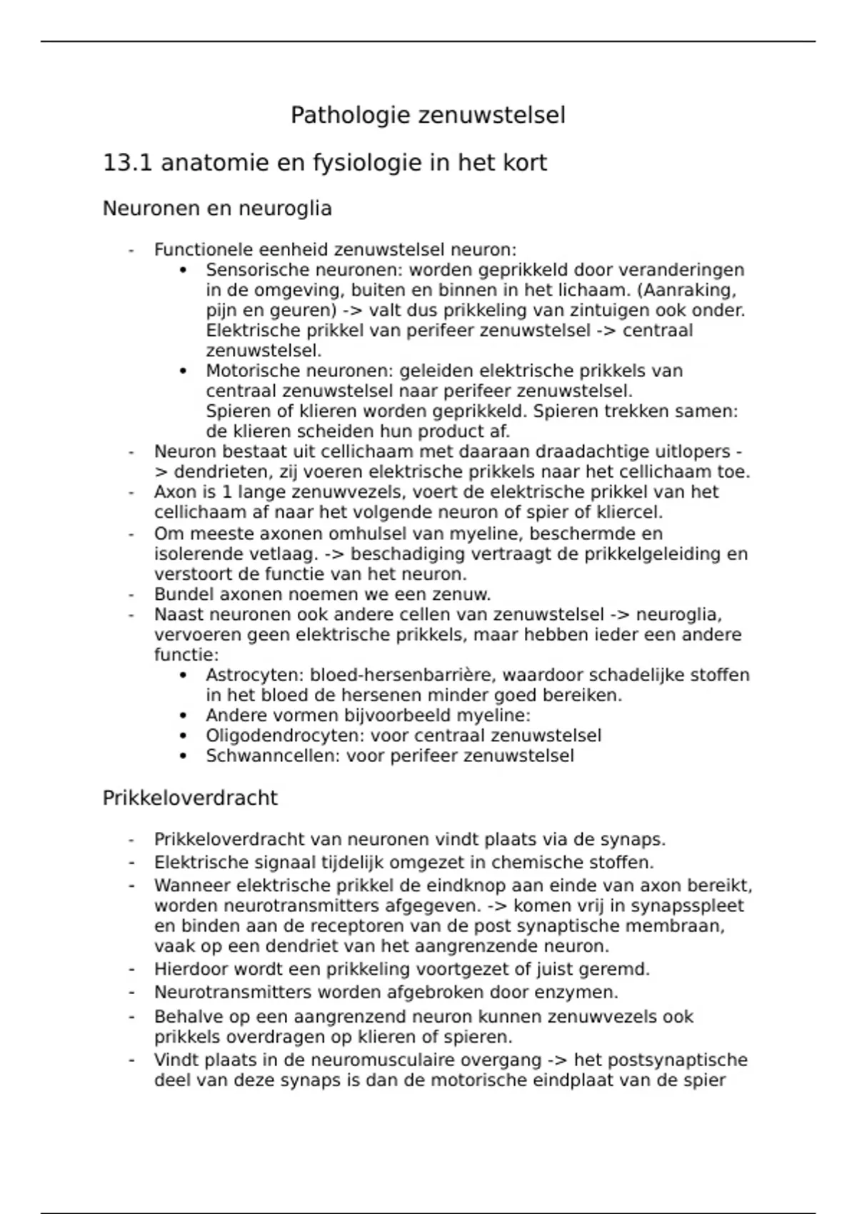 - Prikkeloverdracht van neuronen vindt plaats via de synaps.