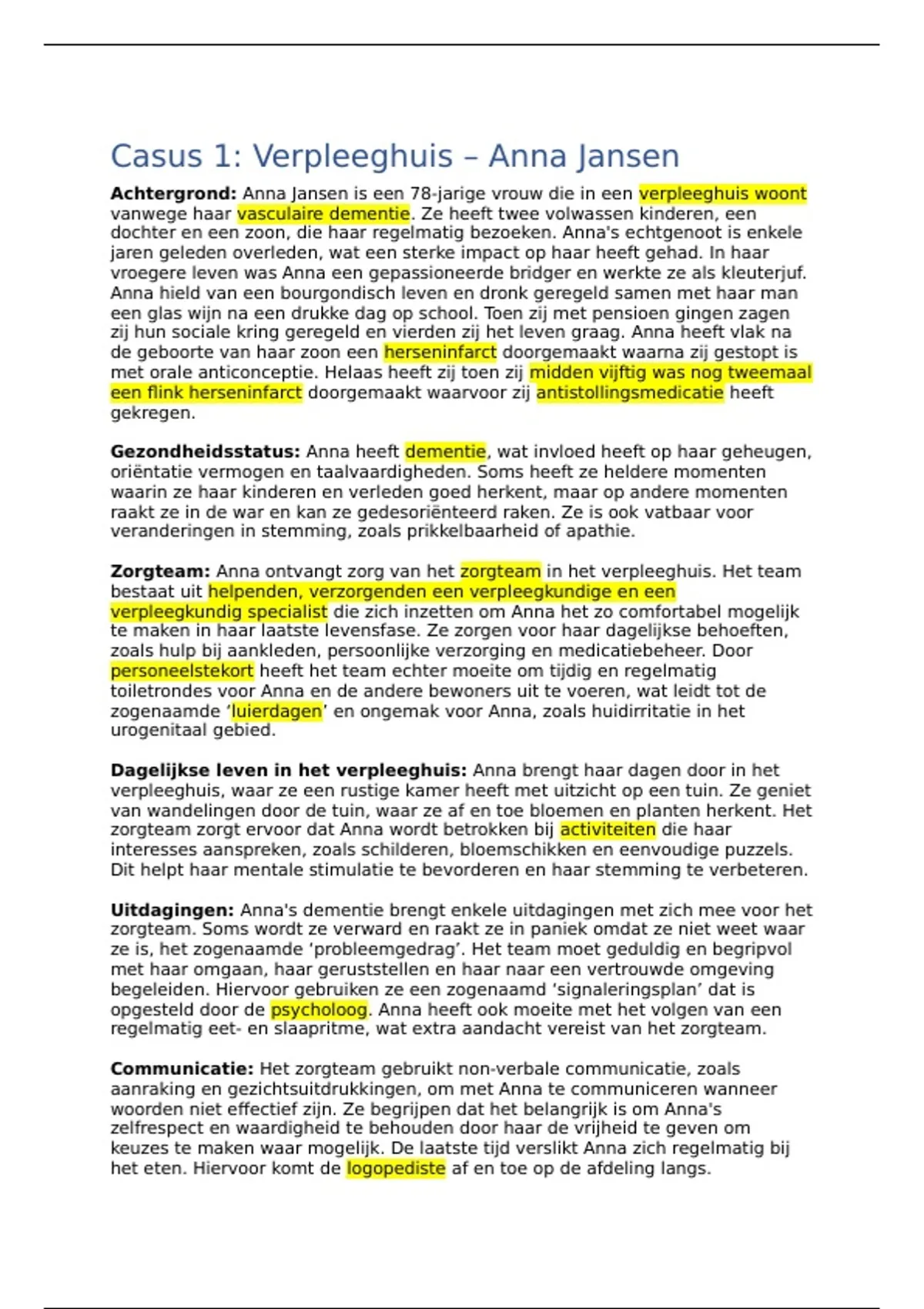Casus 1: Verpleeghuis – Anna Jansen