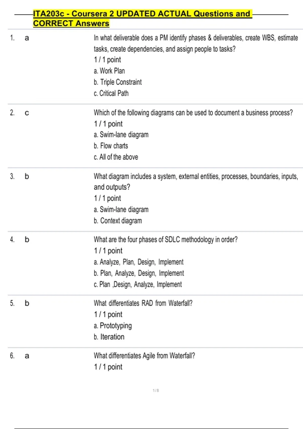 , ITA203c - Coursera 2 UPDATED ACTUAL Questions and