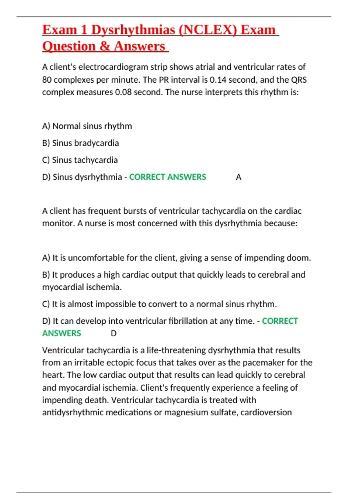 Exam 1 Dysrhythmias (NCLEX) Exam Question & Answers.docx