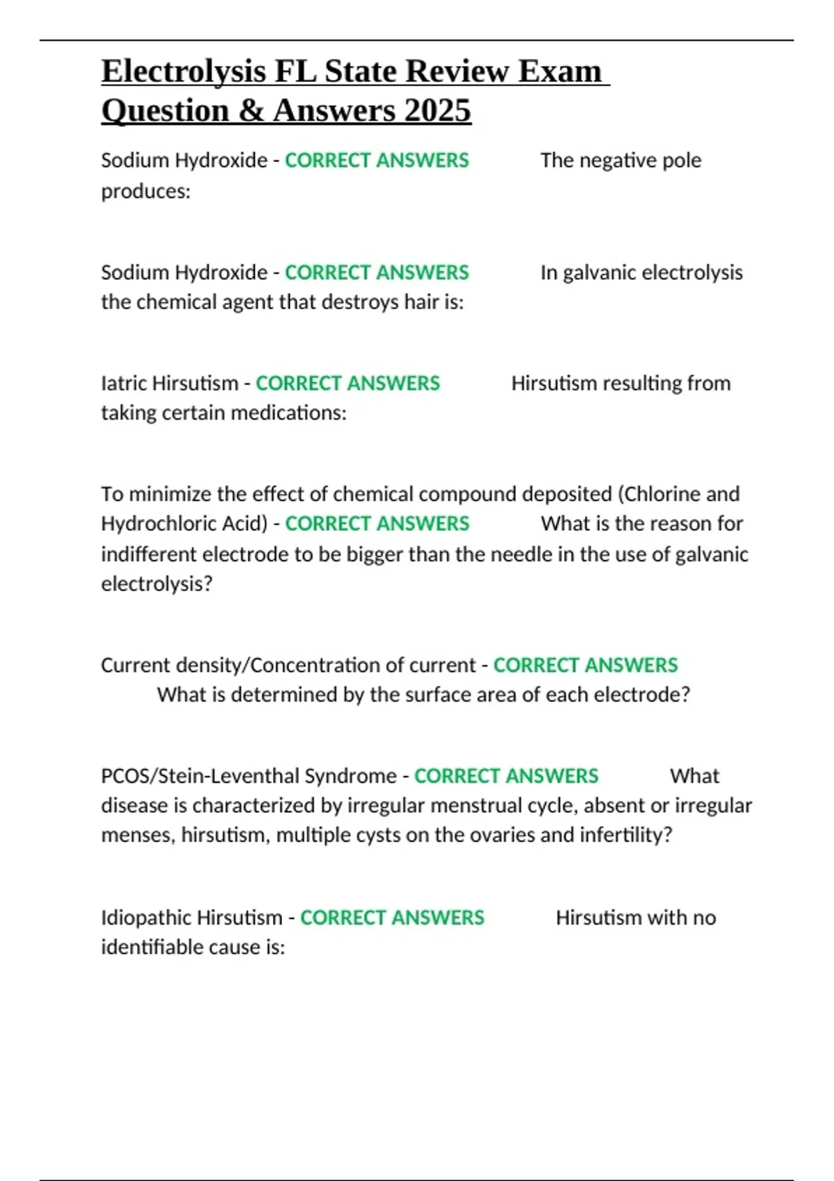 ,Electrolysis FL State Review Exam