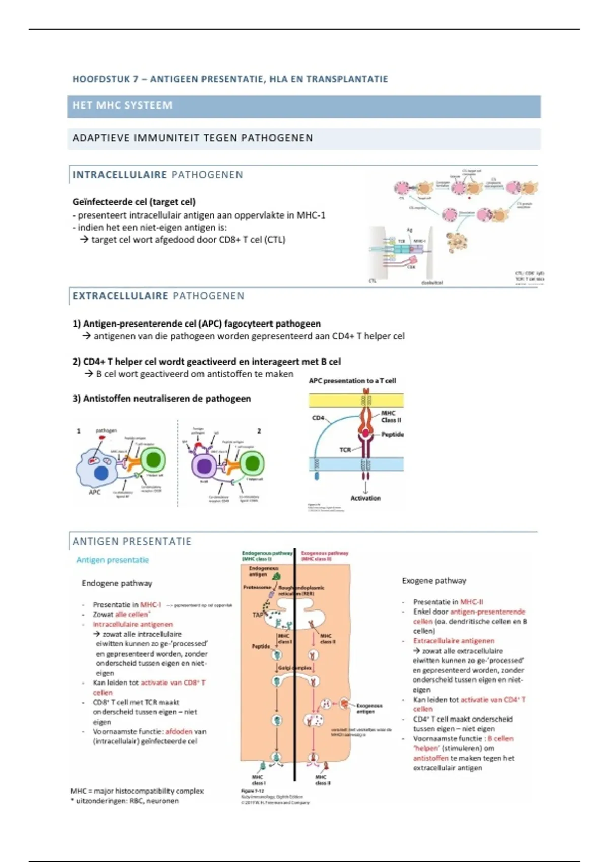 HOOFDSTUK 7 – ANTIGEEN PRESENTATIE, HLA EN TRANSPLANTATIE
