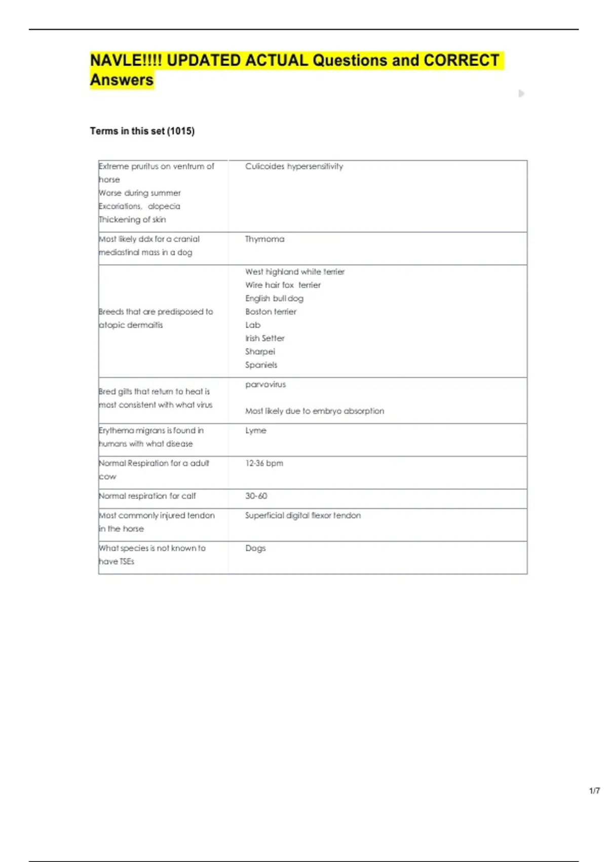 NAVLE!!!! UPDATED ACTUAL Questions and CORRECT