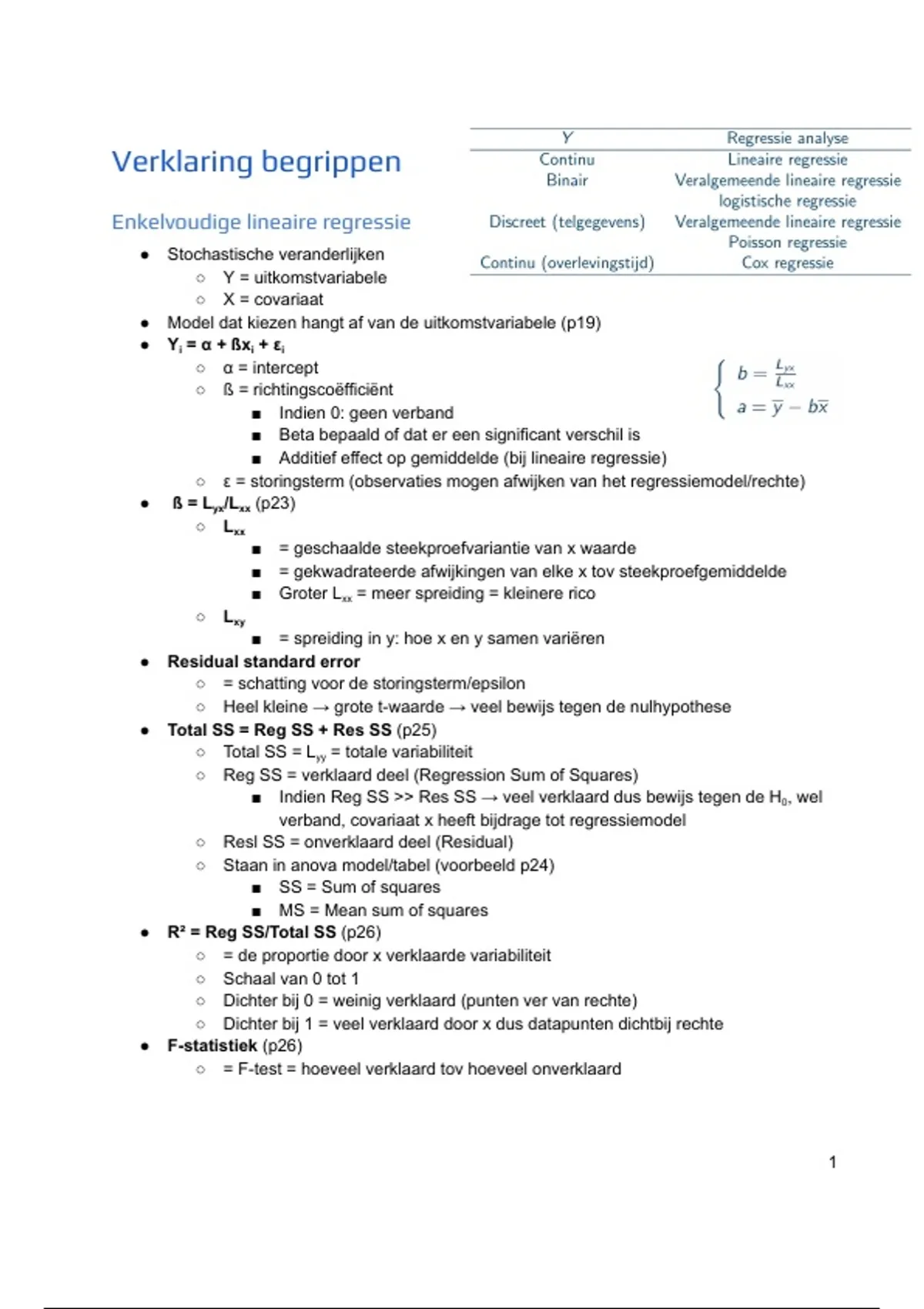 ​●​ ​Betrouwbaarheidsinterval: als 0 mee in interval dan geen verband tussen x en y, dan H​​0​