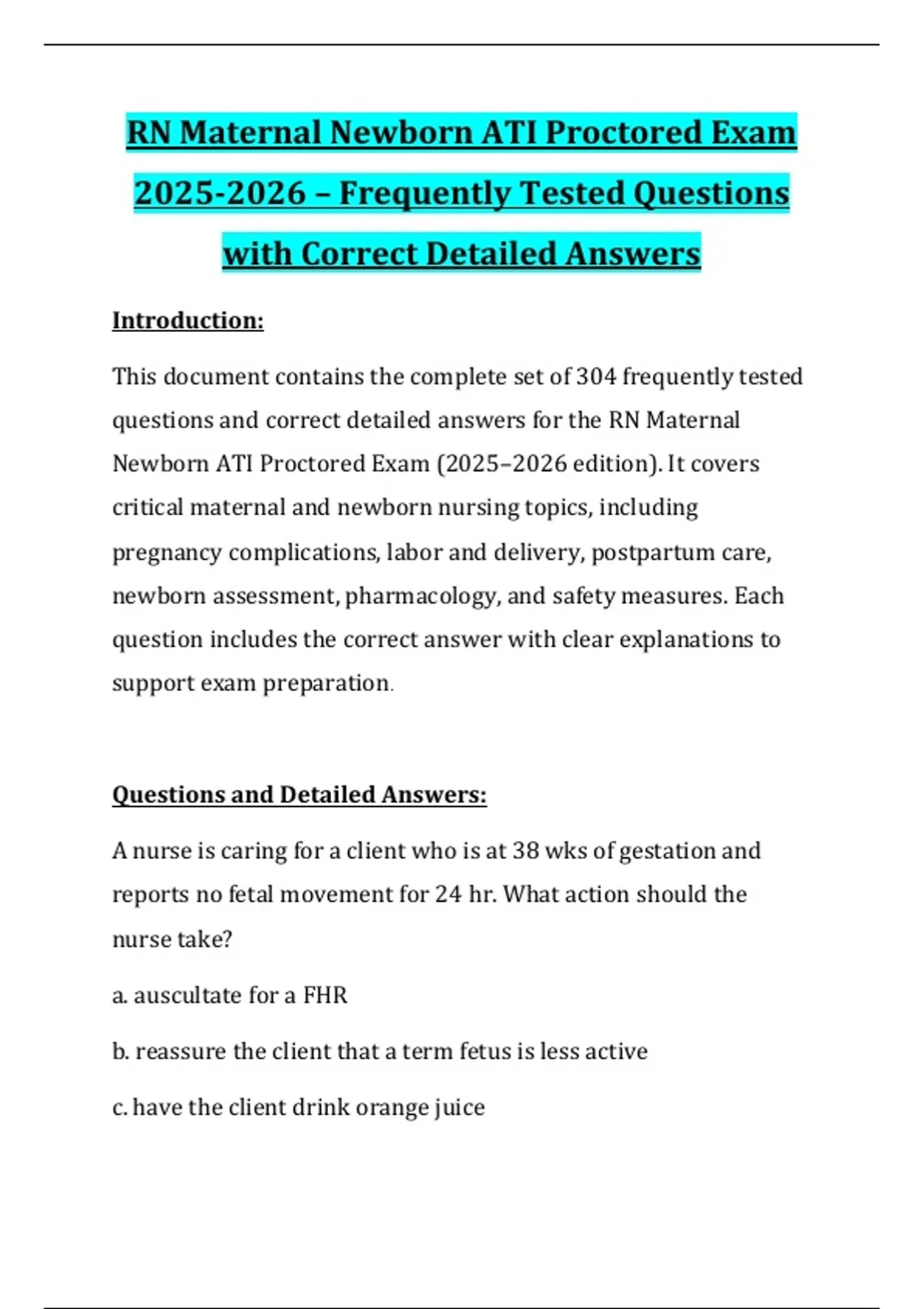 Newborn ATI Proctored Exam (2025–2026 edition). It covers