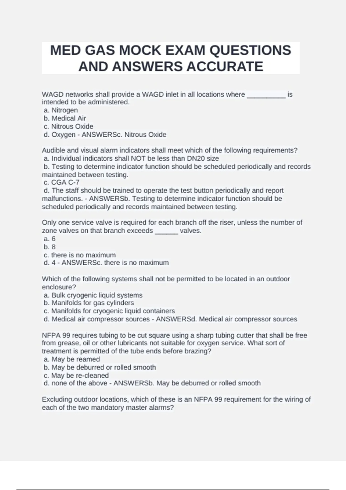 MED GAS MOCK EXAM QUESTIONS AND ANSWERS ACCURATE