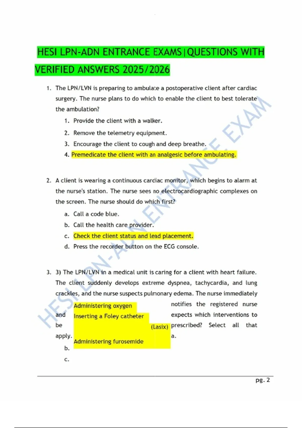HESI LPN-ADN ENTRANCE EXAMS|QUESTIONS WITH VERIFIED ANSWERS 2025/2026