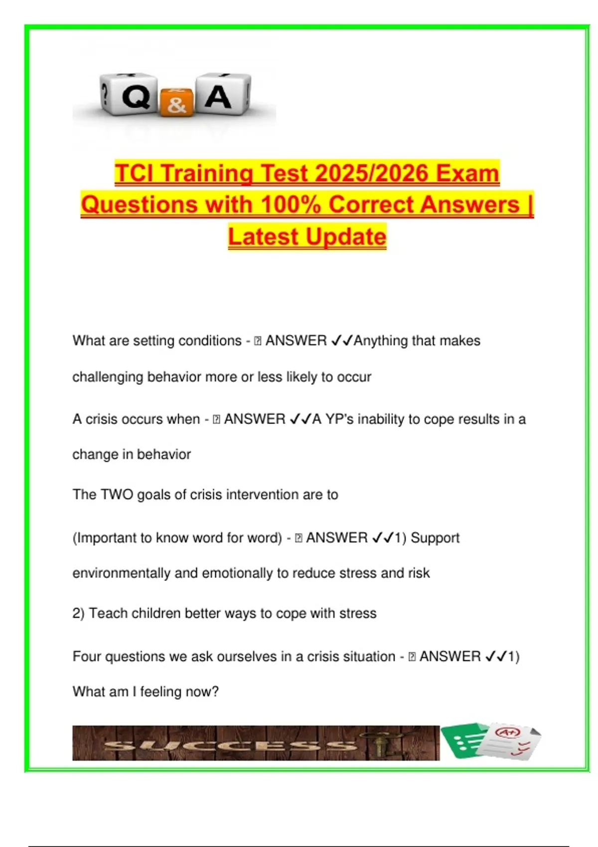 A crisis occurs when - 🧠 ANSWER ✔✔A YP's inability to cope results in a