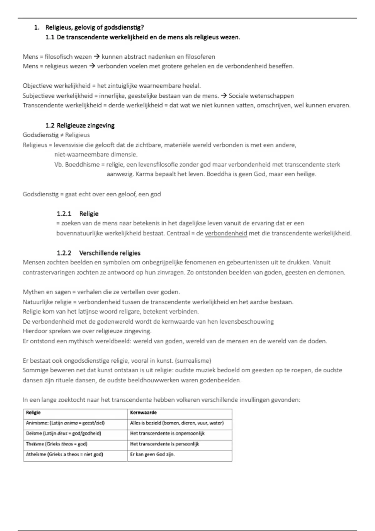 Religieus = levensvisie die gelooK dat de zichtbare, materiële wereld verbonden is met een andere,