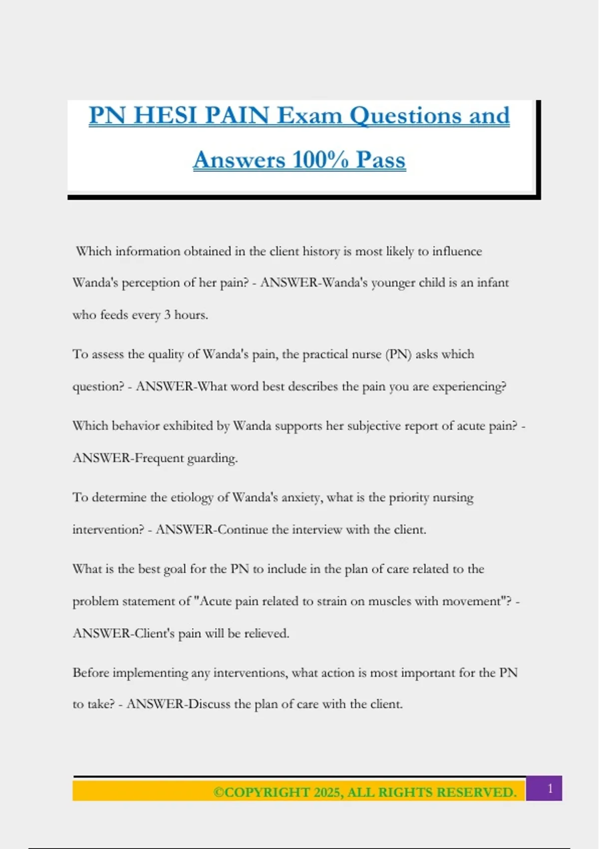 PN HESI PAIN Exam Questions and
