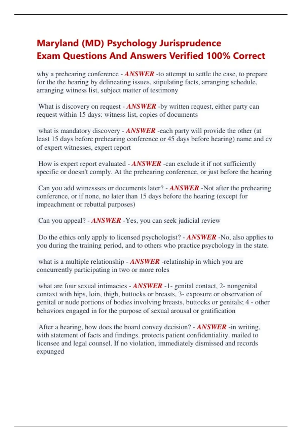 Exam Questions And Answers Verified 100% Correct