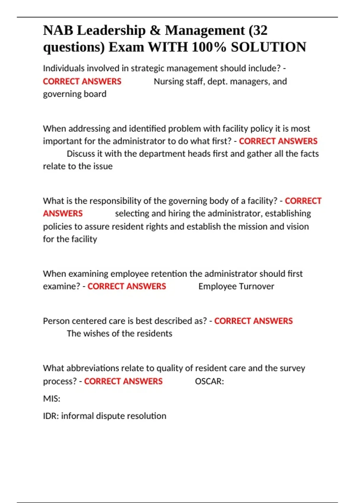 NAB Leadership & Management (32 questions) Exam WITH 100- SOLUTION.docx