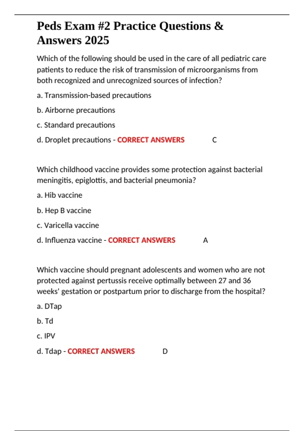 d. Tdap - CORRECT ANSWERS ✔✔D