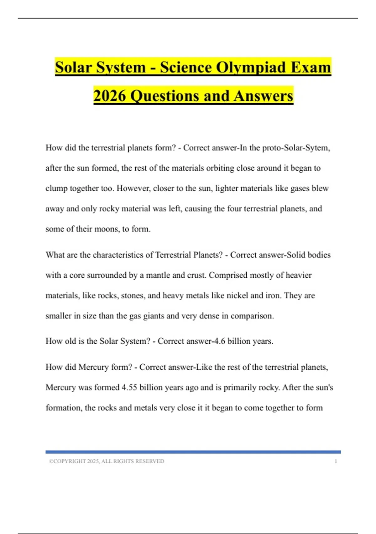Solar System - Science Olympiad Exam