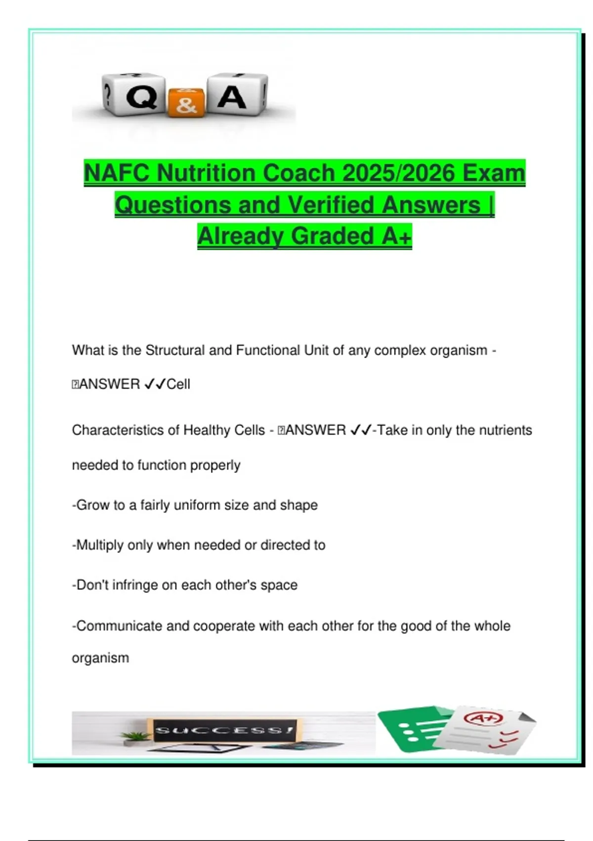 Characteristics of Healthy Cells - 🧠ANSWER ✔✔-Take in only the nutrients