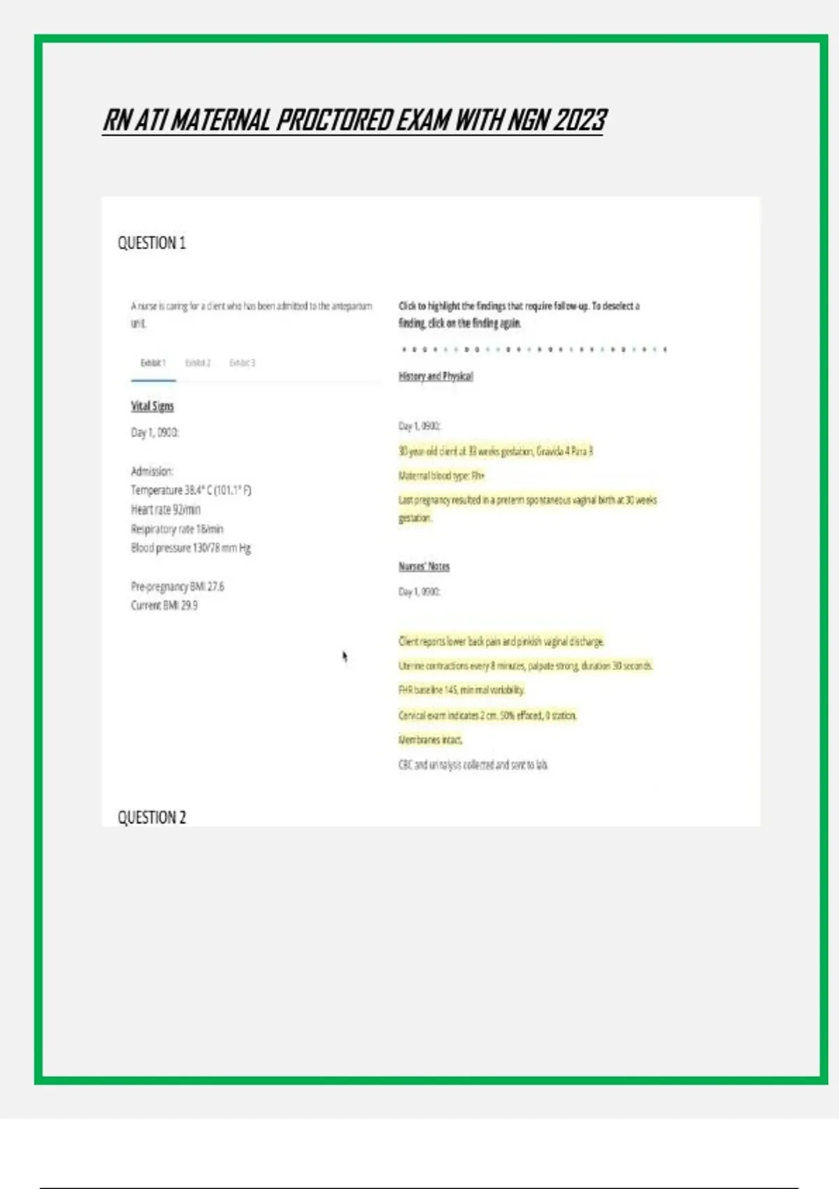 RN ATI MATERNAL PROCTORED EXAM WITH NGN 2023