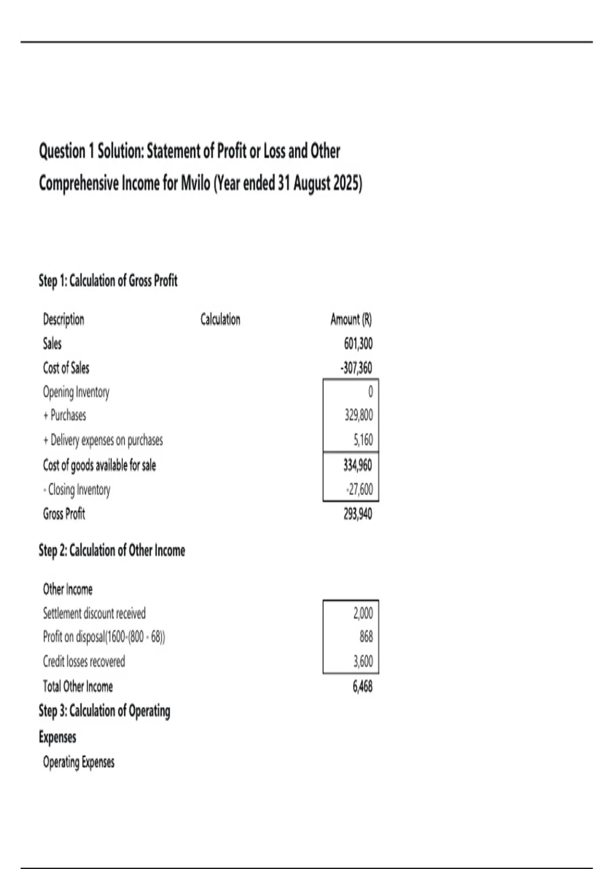 Step 2: Calculation of Other Income