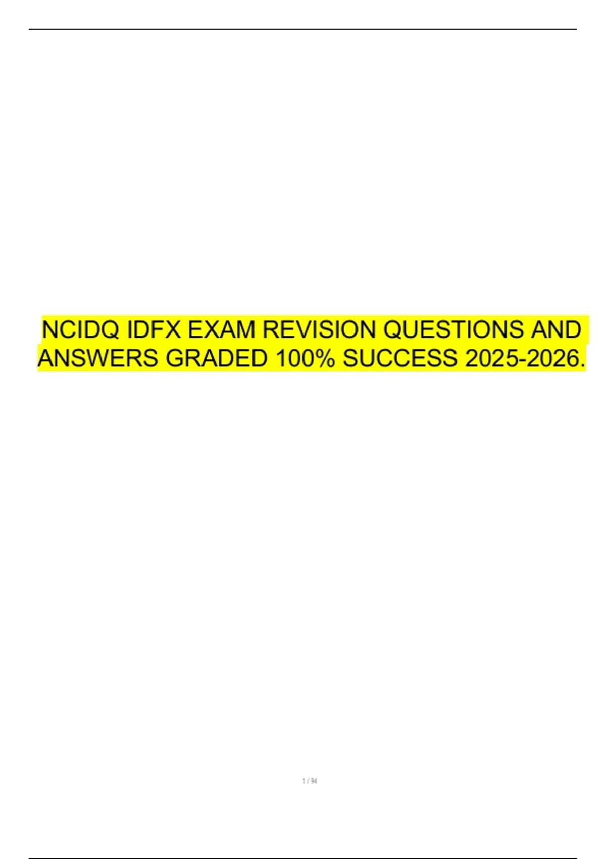 This document offers a complete collection of NCIDQ IDFX (Interior Design Fundamentals Exam) revision questions with correct answers for the 2025–2026 exam cycle. It reviews all major IDFX exam topics, including design theory, building systems, codes and regulations, materials and finishes, and professional practice. Graded with 100% success, this resource is designed to provide candidates with accurate, reliable, and effective preparation for the NCIDQ exam.