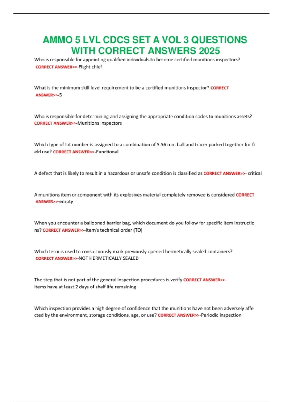 AMMO 5 LVL CDCS SET A VOL 3 QUESTIONS WITH CORRECT ANSWERS 2025AMMO 5 LVL CDCS SET A VOL 3 QUESTIONS WITH CORRECT ANSWERS 2025AMMO 5 LVL CDCS SET A VOL 3 QUESTIONS WITH CORRECT ANSWERS 2025AMMO 5 LVL CDCS SET A VOL 3 QUESTIONS WITH CORRECT ANSWERS 2025AMMO 5 LVL CDCS SET A VOL 3 QUESTIONS WITH CORRECT ANSWERS 2025