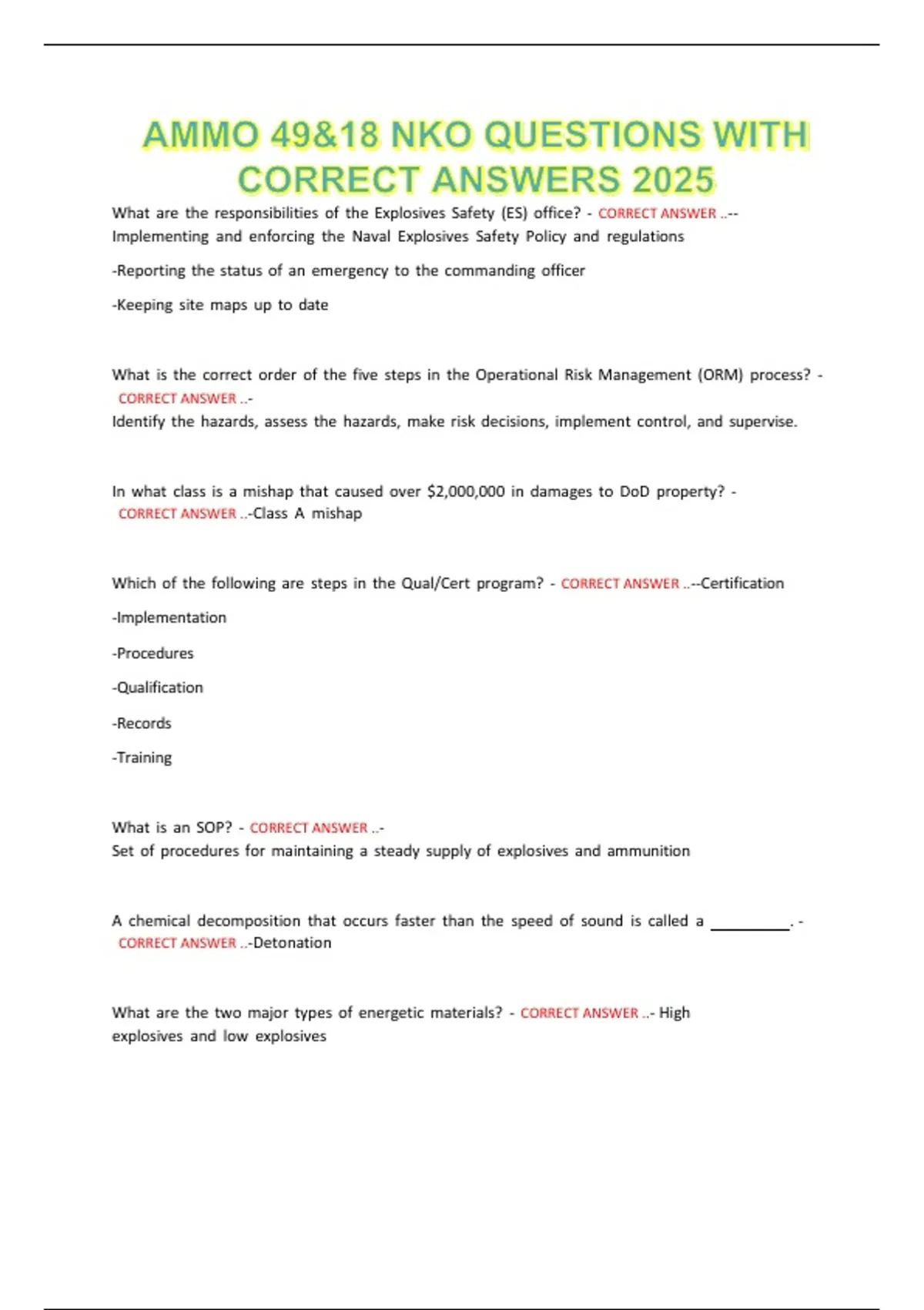 What are the two major types of energetic materials? - CORRECT ANSWER ..- High