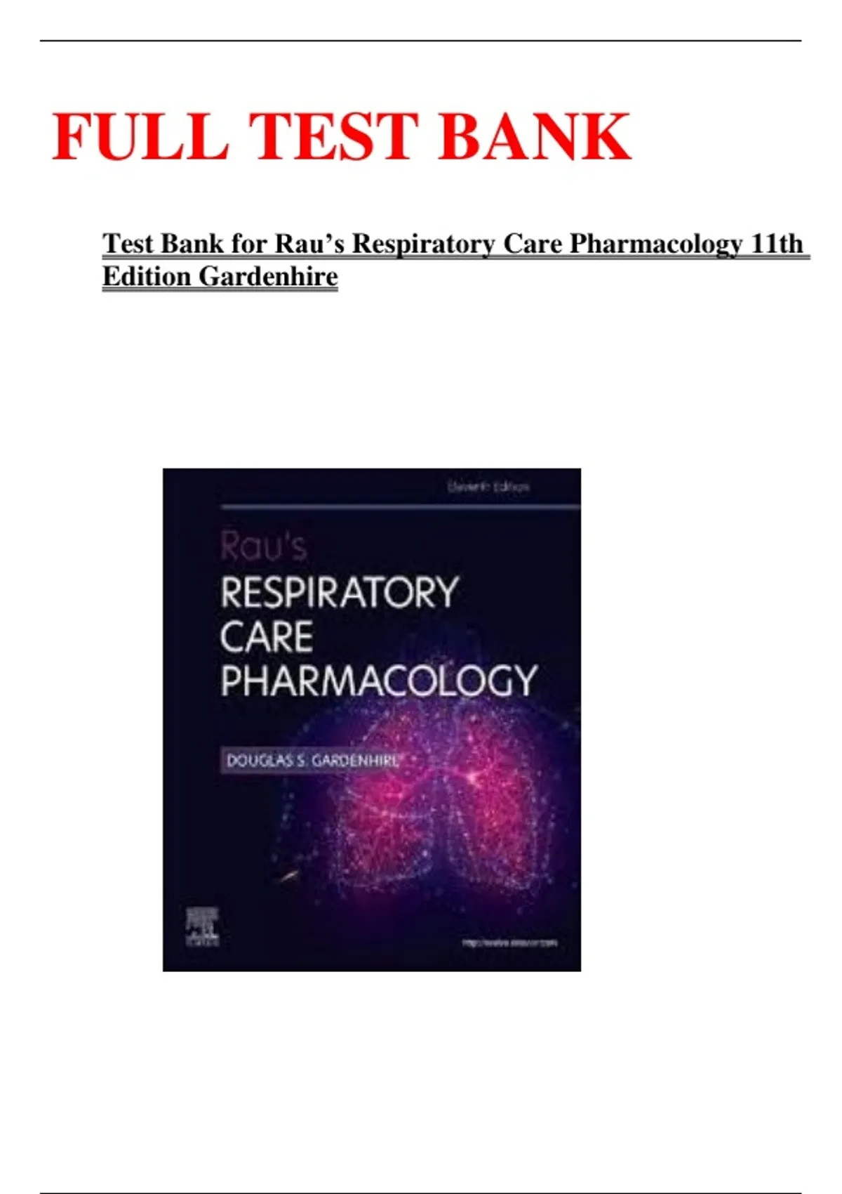 Test Bank for Rau’s Respiratory Care Pharmacology 11th Edition Gardenhire