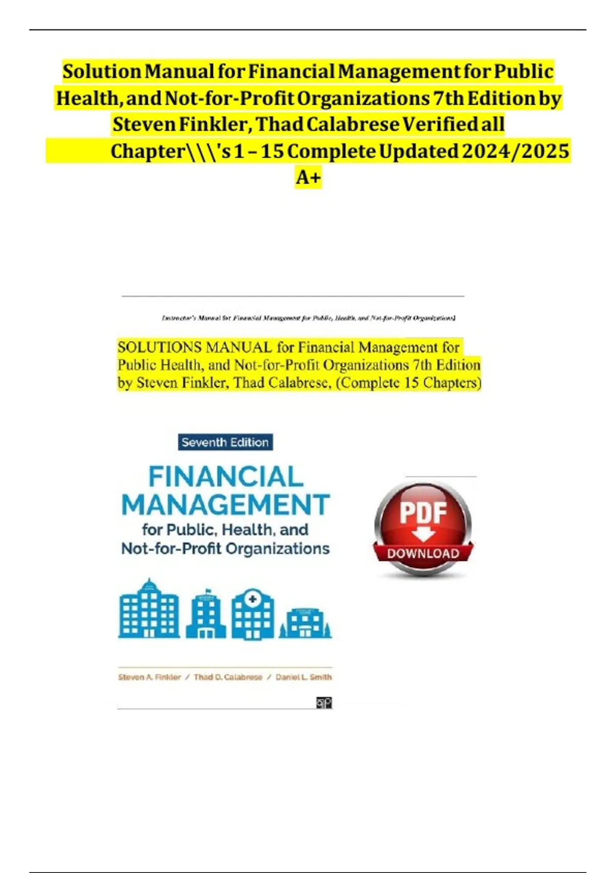 , Instructor’s Manual for Financial Management for Public, Health, and Not-for-Profit Organizations1,