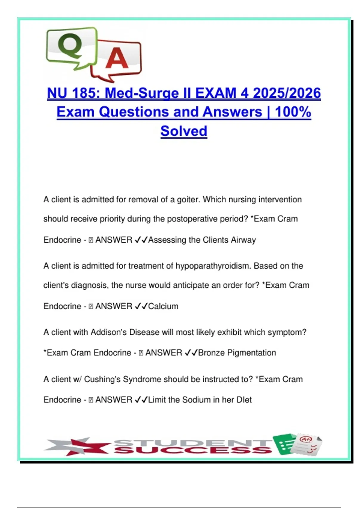 Endocrine - 🧠 ANSWER ✔✔Assessing the Clients Airway