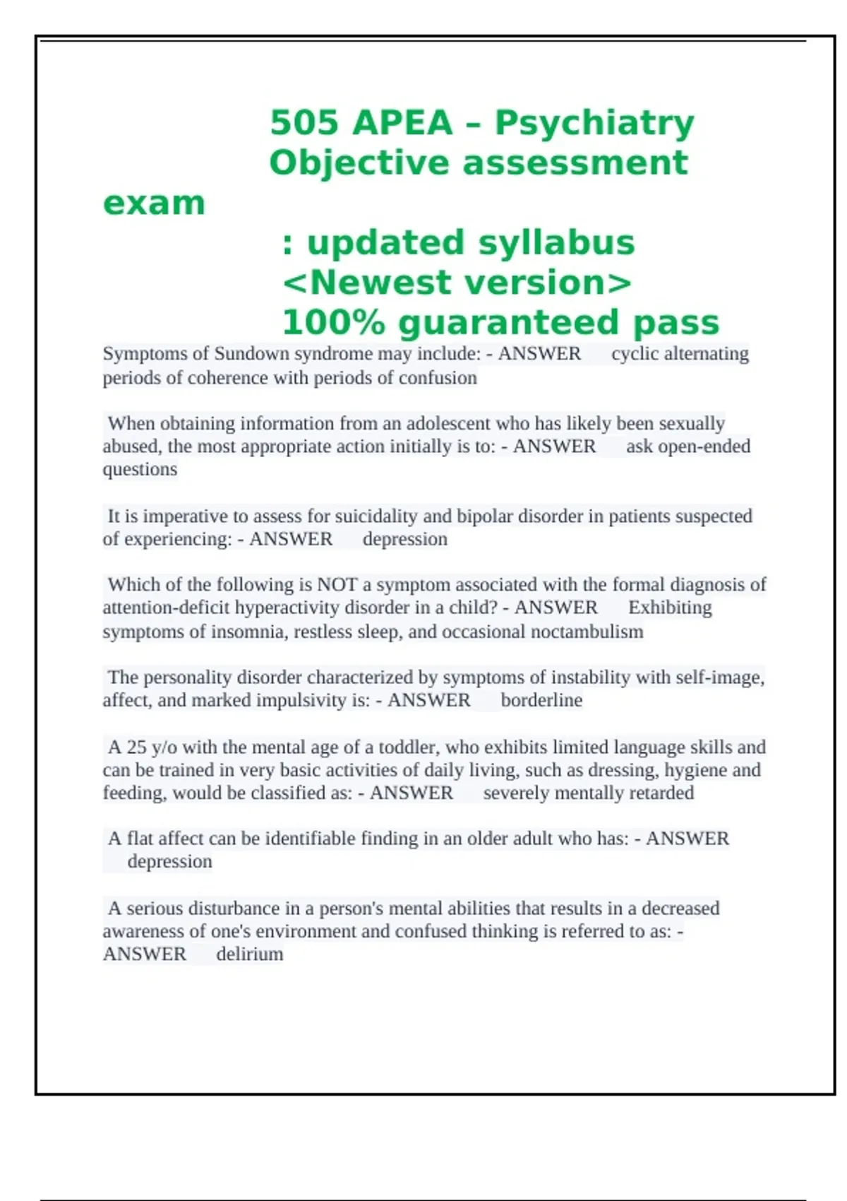 Symptoms of Sundown syndrome may include: - ANSWER ✅cyclic alternating