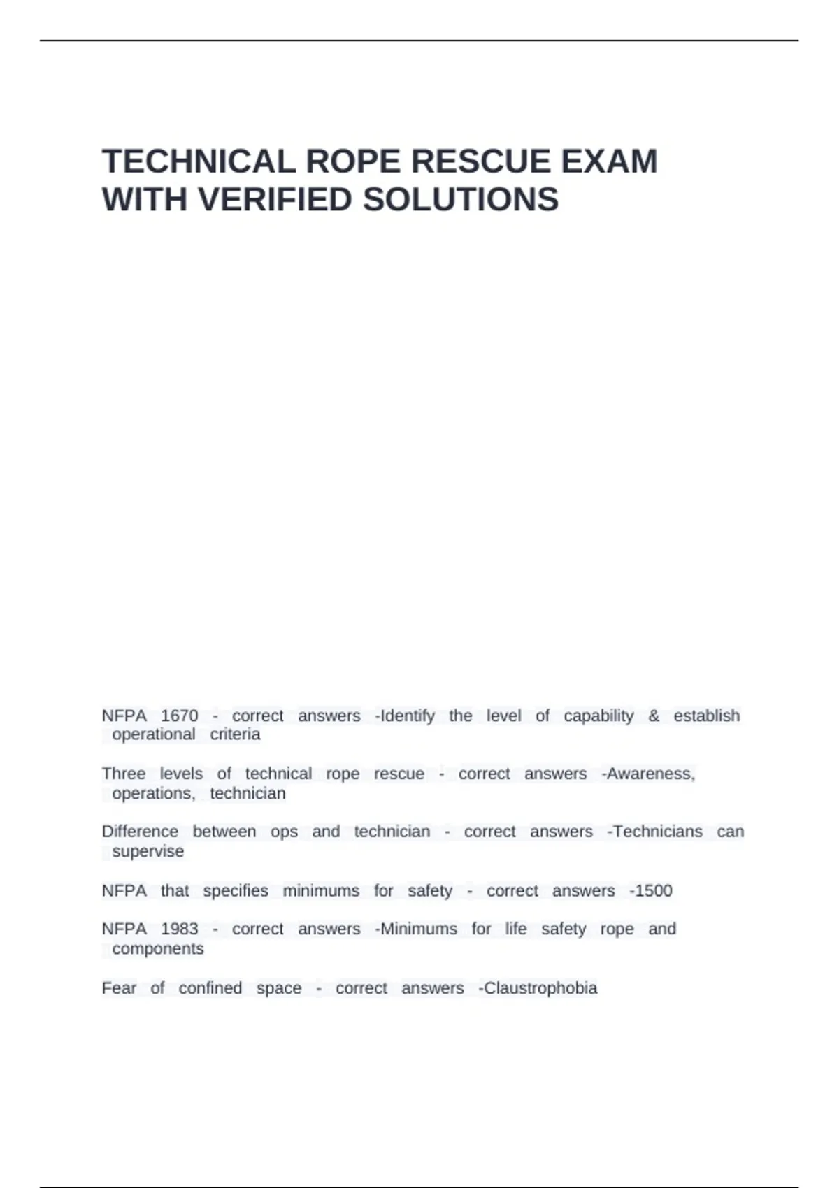 TECHNICAL ROPE RESCUE EXAM WITH VERIFIED SOLUTIONS.