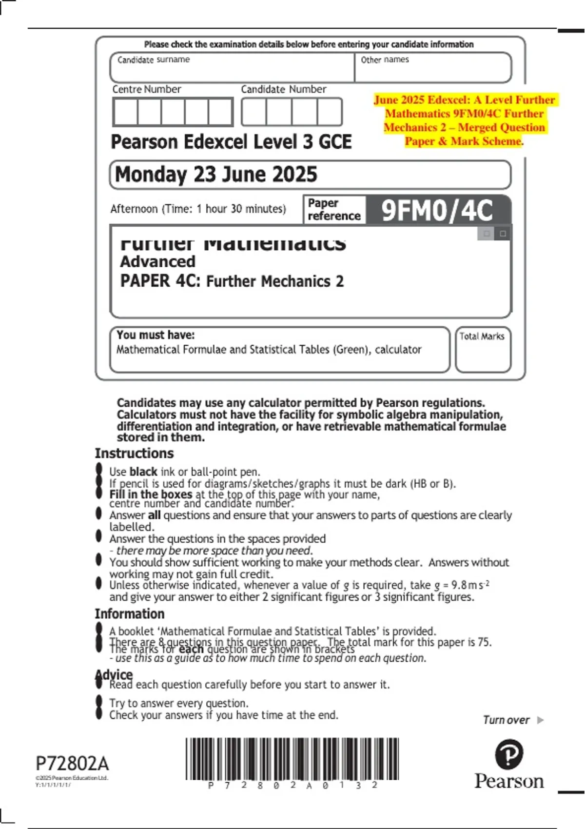 • The are 8 questions in this question paper. The total mark for this paper is 75.