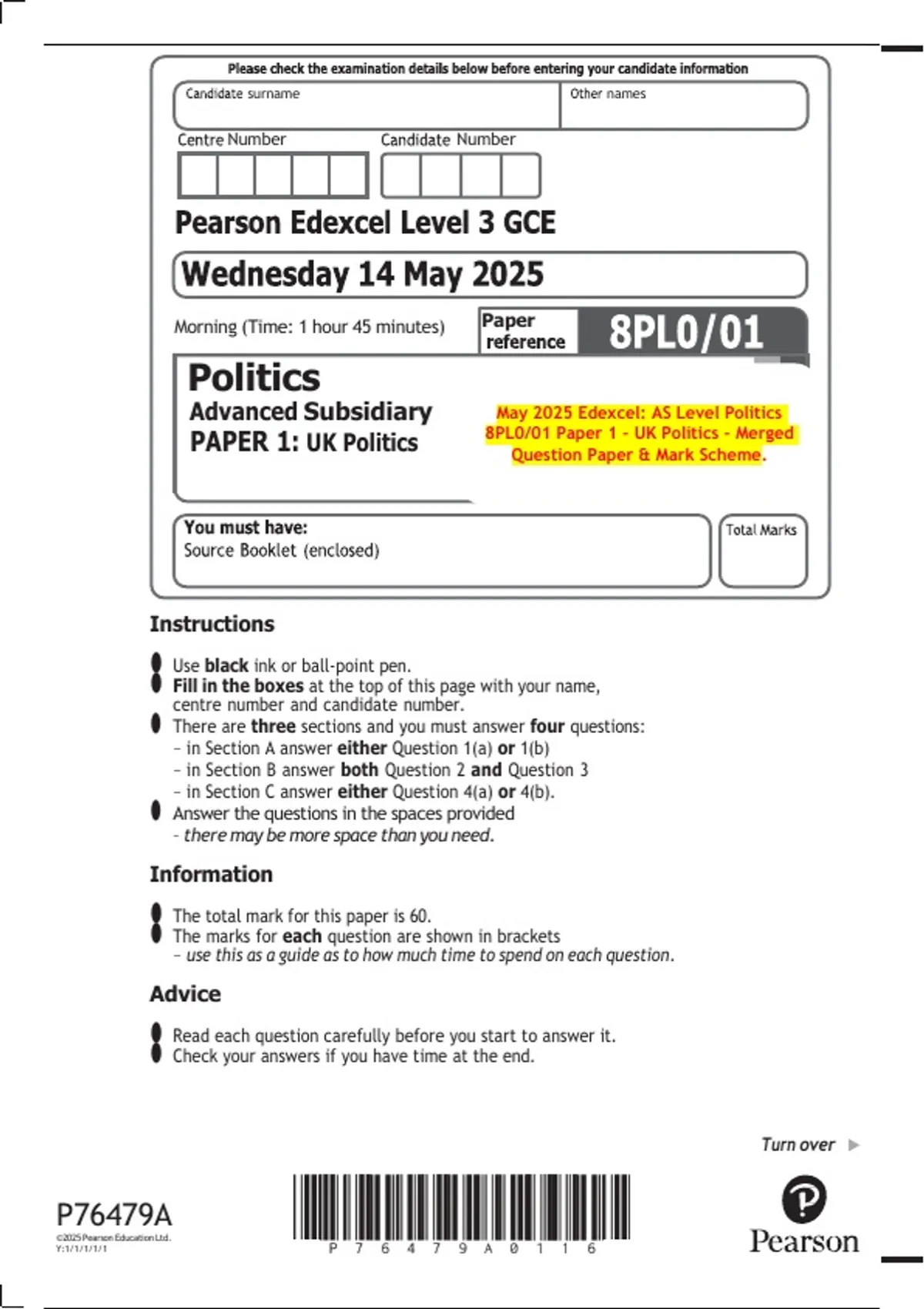 8PL0/01 Paper 1 – UK Politics – Merged