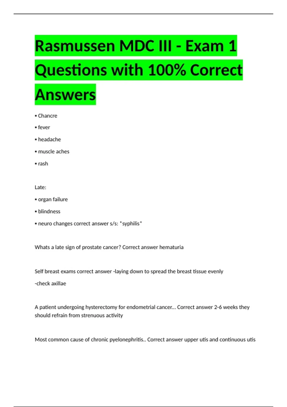 Rasmussen MDC III - Exam 1 Questions with 100% Correct Answers