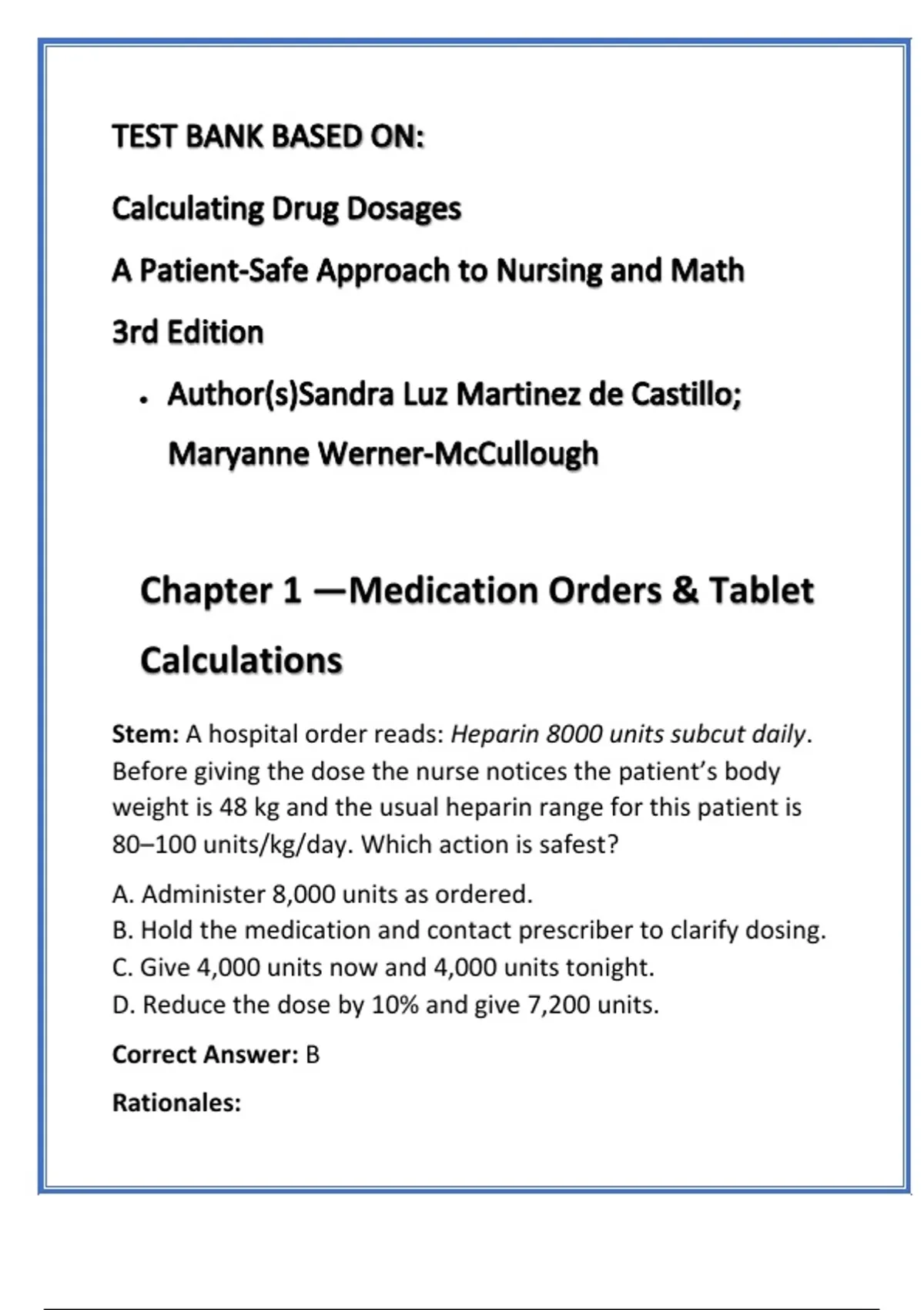 Stem: A hospital order reads: Heparin 8000 units subcut daily.