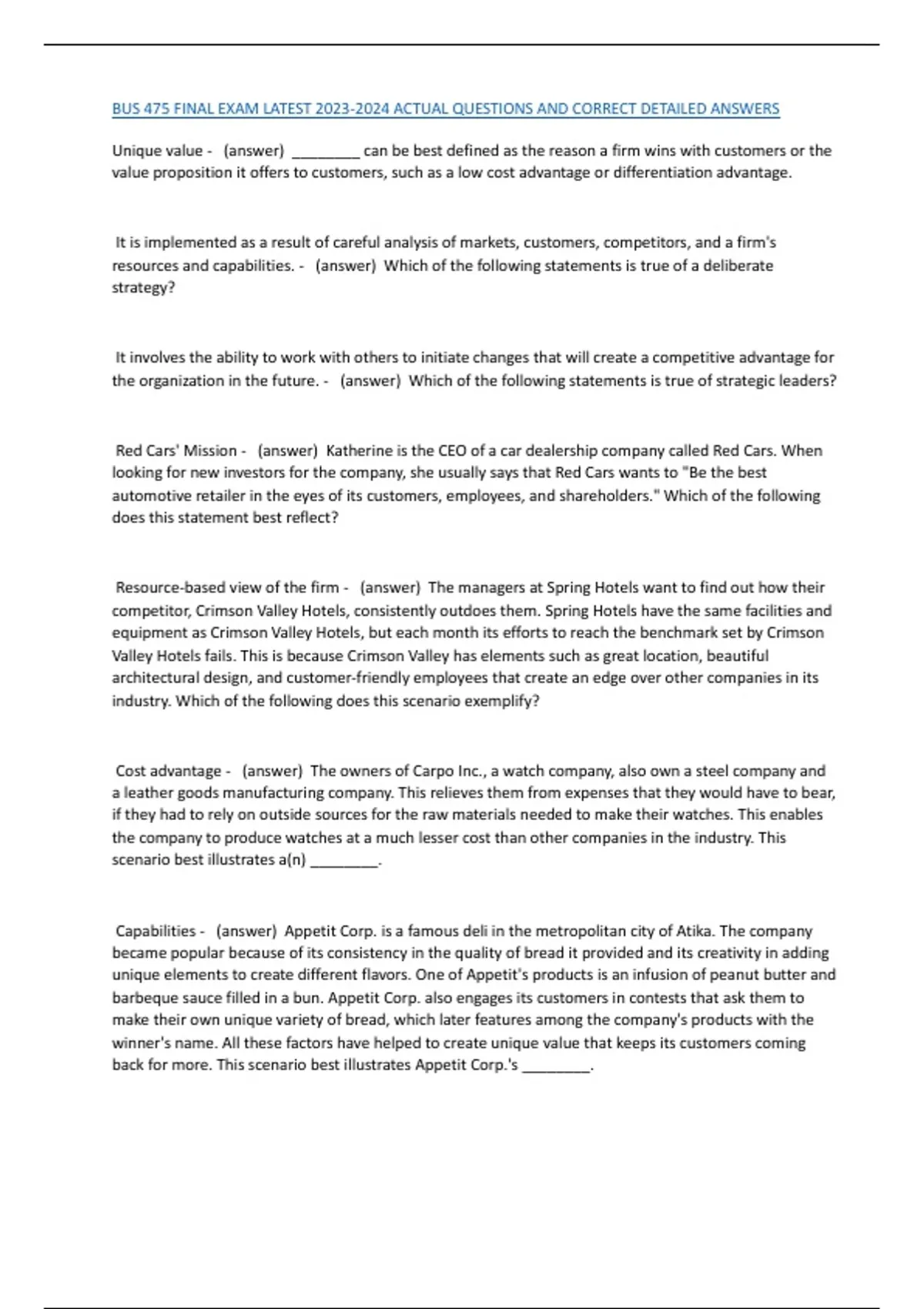 BUS 475 FINAL EXAM LATEST 2023-2024 ACTUAL QUESTIONS AND CORRECT DETAILED ANSWERS