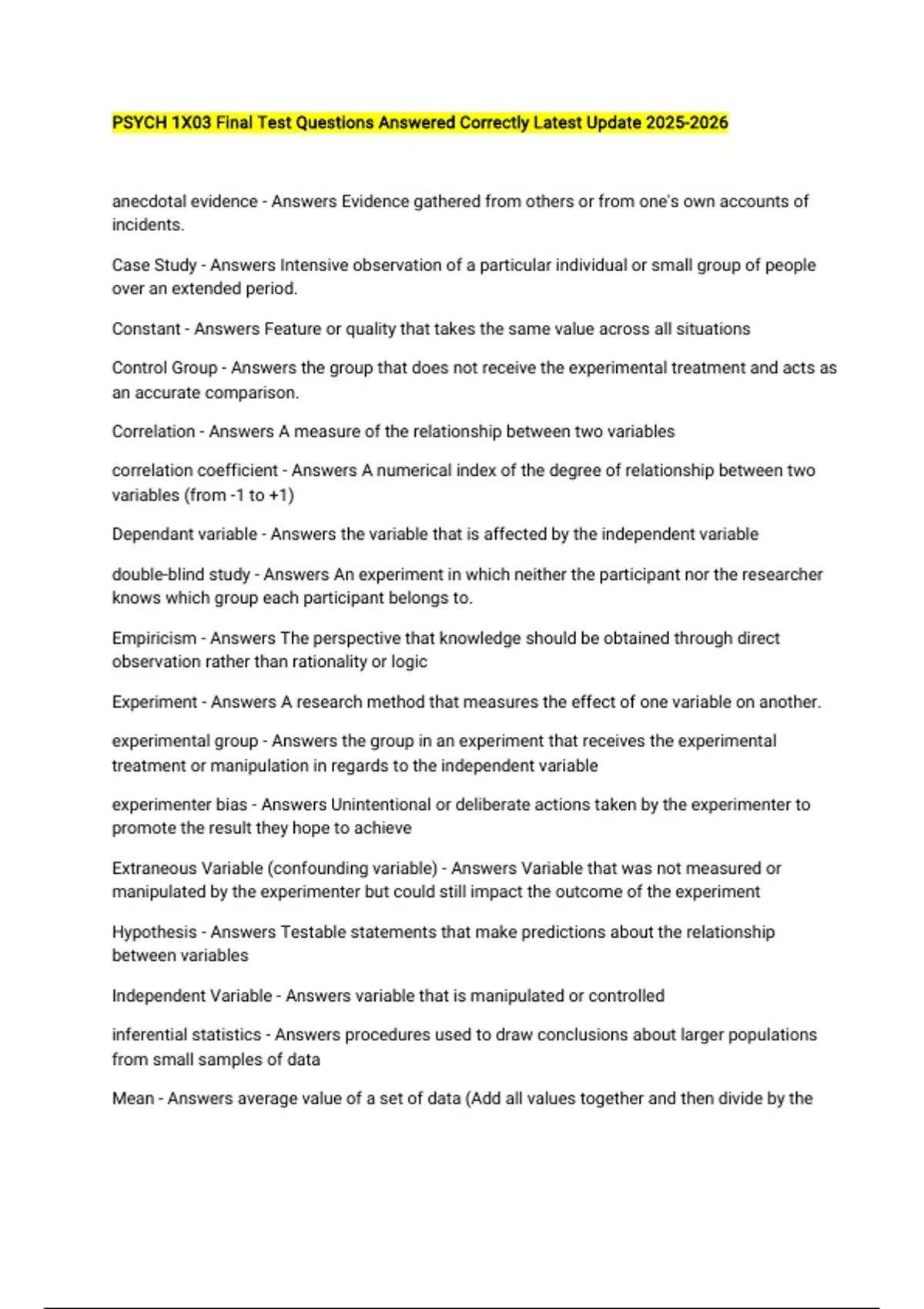 Extraneous Variable (confounding variable) - Answers Variable that was not measured or