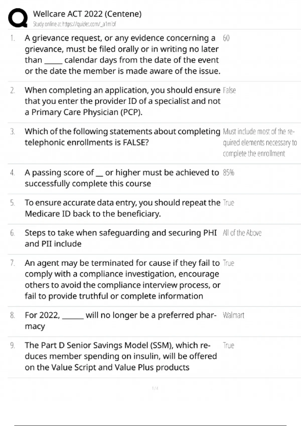 Wellcare ACT 2022 Test Bank / Centene Certification / 2025 Update / Score 100%