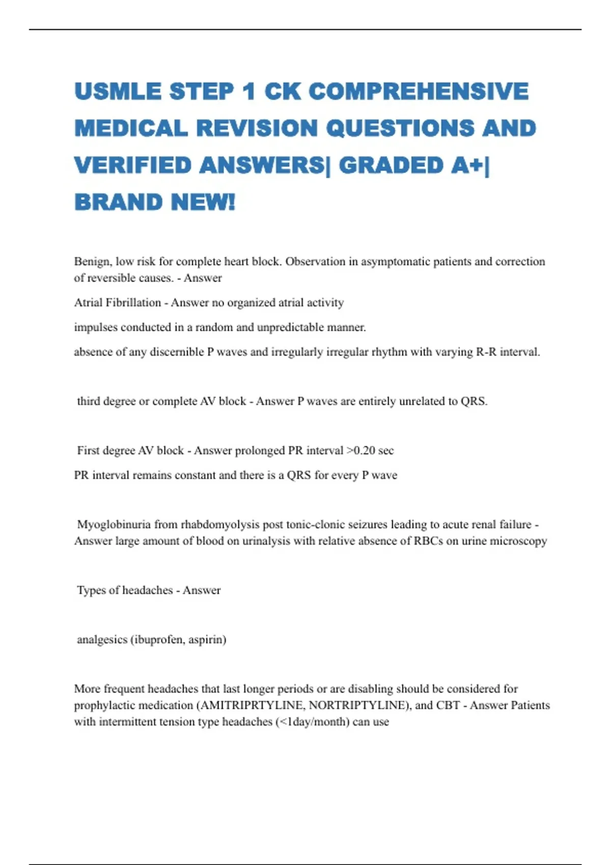 USMLE STEP 1 CK COMPREHENSIVE MEDICAL REVISION QUESTIONS AND VERIFIED ANSWERS| GRADED A+| BRAND NEW!